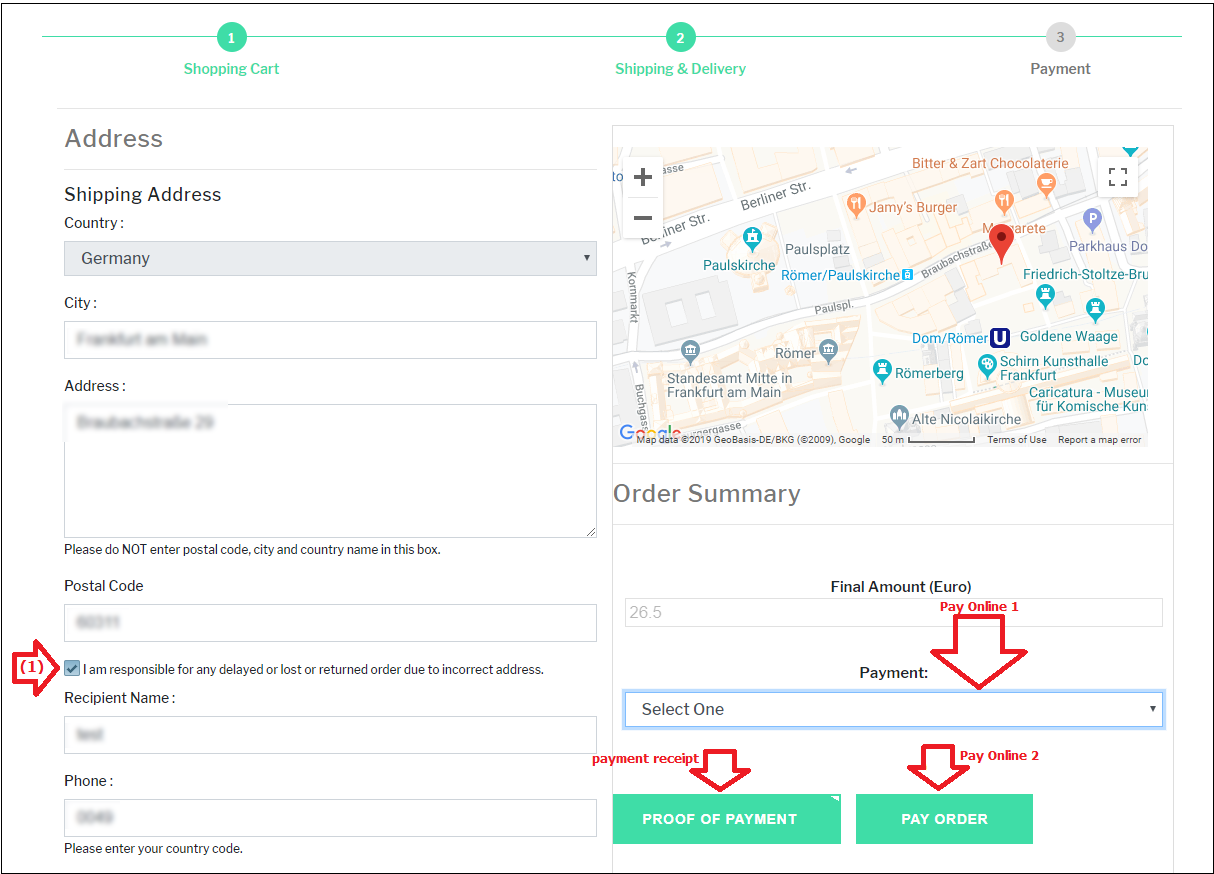 We strongly recommend you to find your address location using the map, so that the address will be automatically added to the form and you can check it.